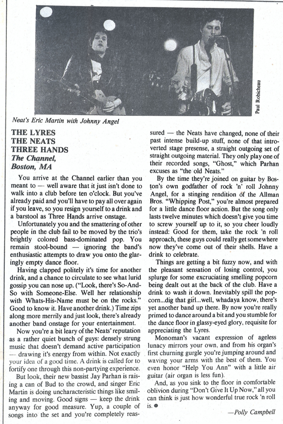 Anyway, here’s Polly’s concert review from 1985. Take yourself back there for a bit.